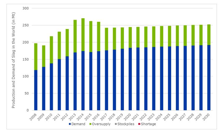 Unfortunately, there is a recognised shortage of supply of slag and the situation is deteriorating as the manufacturing of steel from iron ore is switching from blastfurnace to the less energy intensive electric arc furnaces. From a UK perspective there is very little fly ash available and slag is increasingly being imported from around the globe (e.g. from Spain and even Japan). Global cement production is around 4.1 billion tonnes per annum, which the Global Cement and Concrete Association estimate to equate 14 billion cubic metres of concrete. Annual slag production is 250mT of which around 170mT is ground into a cementitious material (the remainder is allowed to air-dry to form a lightweight aggregate). Increased grinding could see slag levels at around 200million tonnes/year. There is plenty of anecdotal evidence that slag shortages are impacting the market. In the past few weeks the author has spoken to or been informed that: